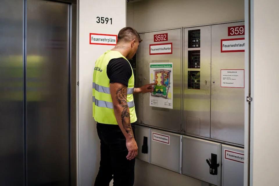 Darüber hinaus warten unsere Brandschützer die Brandschutzeinrichtungen wie beispielsweise Feuerlöscher oder Feuerschutztüren. Zu ihren weiteren Aufgaben zählen auch die Gefahrenerkennung und das Eingreifen vorbeugender Maßnahmen, um Schadens- und Produktionsausfälle in Ihrem Unternehmen zu verhindern.